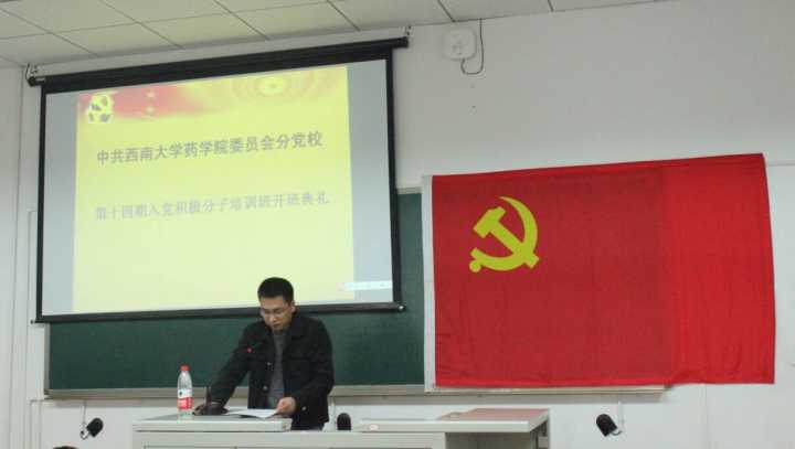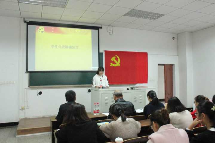 接着是学生代表杨锦发言。她介绍了中国共产党的历史与现实,并结合当下,从自身角度出发,呼吁同学们珍惜党课这样的一个好机会,争取早日成为一名合格的共产党员。在发言最后,她代表本期党课学员做出严格遵守培训要求,以实际行动积极向党组织靠拢看齐等承诺。
