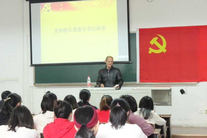 最后,党校校长夏德全书记进行了讲话。他先向同学们详细地介绍了授课教师。接着他给学员们提出了几点要求与希望:作为入党积极分子应主动地宣传党的方针政策,用自己所学理论影响周围群众。希望学员们通过党校的学习能领会十九大精神,认真学习新党章,真正提高自身的理论水平、增强自身修养和坚定理想信念,争取早日加入中国共产党。并且通过一个入党答辩的例子引出:课堂的标准应是帮助同学们理解,而在课外则需要同学们自己去认真学习党章党史的观点。讲话的最后,他预祝本期党课能取得圆满成功,祝愿同学们学习愉快、学有所获。