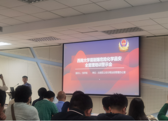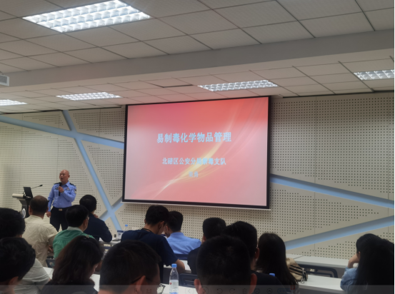 重庆市公安局北碚区分局禁毒支队渠勇警官作题为《易制毒化学品相关法律法规及其具体管理要求》报告,从易制毒化学品管理背景、管理对象、管理方法以及相关法律法规等几个方面做了详细讲解;治安支队张轩铭警官作题为《易制爆危险化学品相关法律法规及其具体管理要求》的报告,从易制爆危险化学品的定义及名录、易制爆危险化学品管理的法律依据以及管理易制爆危险化学品的相关要求等几个方面做了详细讲解。随后,所有参会老师进行了线上实验室安全测试。
